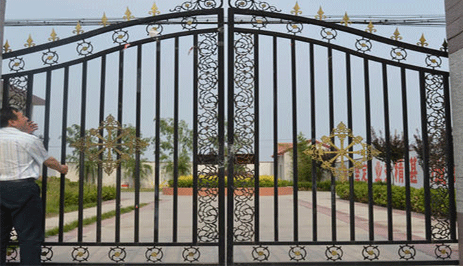1.铁艺大门设计独特:一款好的产品,前期的设计是非常重要的,设计师们往往要根据客户的需求反复的修改,在符合结构合理的前提下,要体现出铁艺大门独特的一面;
