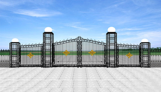1.铁艺大门设计独特:一款好的产品,前期的设计是非常重要的,设计师们往往要根据客户的需求反复的修改,在符合结构合理的前提下,要体现出铁艺大门独特的一面;