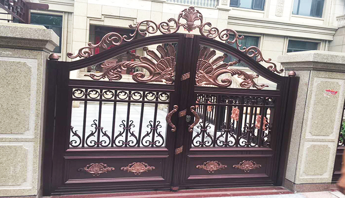 表面颜色:一般铝艺大门颜色基本有6种左右,分别为黑、白、金古铜、青古铜、红古铜、这几种颜色,如果要做仿铜工艺的大门,则要求的工艺较为复杂,其产品定位也比较高,价格自然比普通铝艺大门颜色贵出好几倍的。